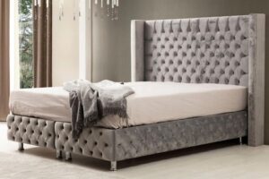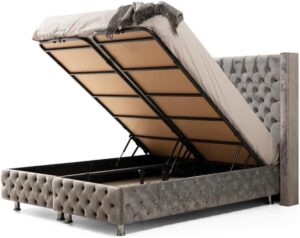 Le “Lit coffre velours avec diamant JULIA” est un luxueux lit de rangement recouvert de velours doux avec une téte de lit capitonnée de diamants et un rangement sous le lit. Il respire l’élégance et le style avec des accents de diamant et est disponible en différentes couleurs et tailles de lit.