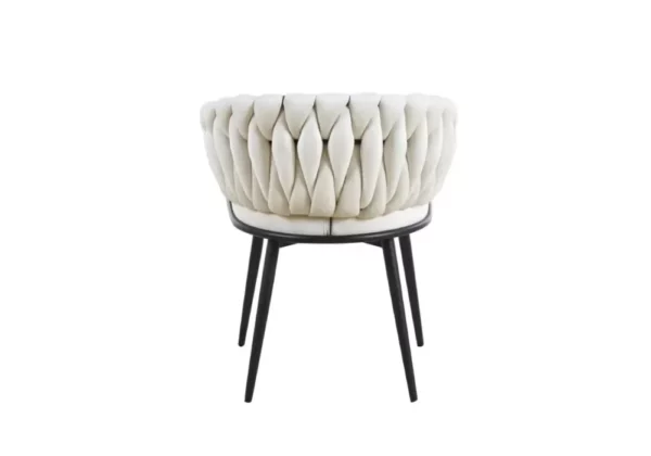Les 4 Chaises Tressées Velours Pied Métal Noir offrent une esthétique sophistiquée avec une touche tressée distinctive. Les pieds en métal noir ajoutent une modernité élégante. Disponibles dans une palette de tons riches en velours, ces chaises combinent confort et style contemporain. Optez pour ces chaises pour une expérience repas oé le design unique rencontre le confort supérieur.