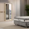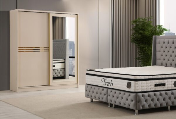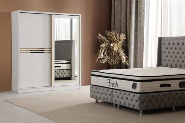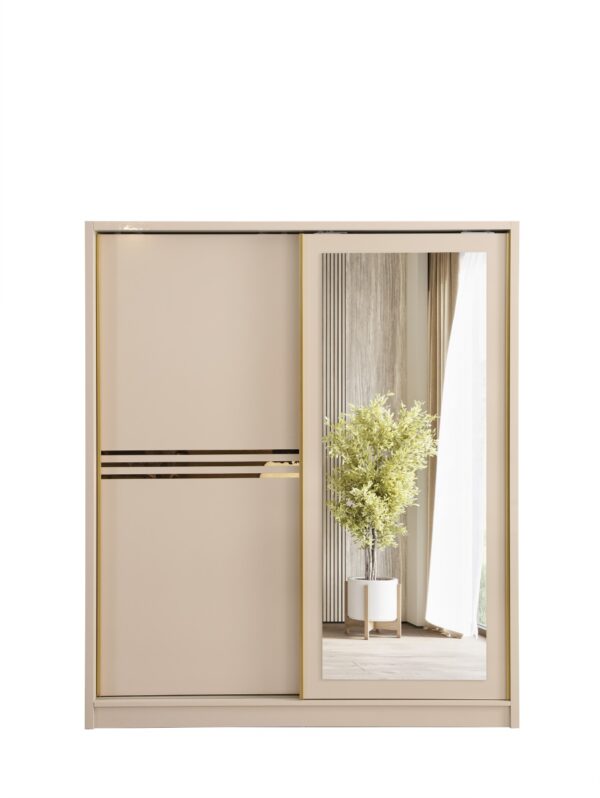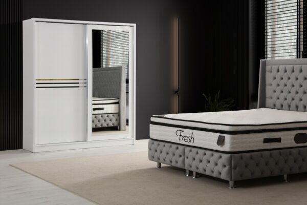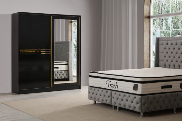 Donnez du style à votre chambre avec cette armoire moderne et fonctionnelle ! ? Disponible en 3 couleurs élégantes : blanc, gris et noir ?, elle s’intègre à tous les intérieurs tout en offrant un espace de rangement généreux ?. Ses finitions dorées ajoutent une touche de luxe ✨, et ses portes coulissantes optimisent votre espace avec élégance ! ?