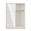 Conçue pour gagner de l’espace, cette armoire utilise des portes coulissantes, idéales dans les pièces où l’espace devant le meuble est limité. Son intérieur bien pensé offre une organisation fonctionnelle avec une combinaison de penderie, étagères et compartiments pour vos vêtements, accessoires et linge de maison.