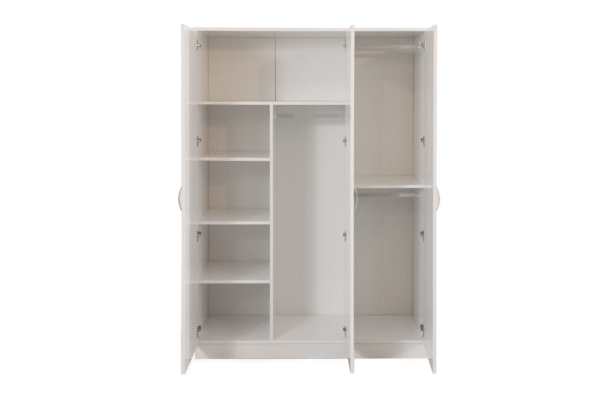 Grâce à ses 3 portes spacieuses, cette armoire offre un accès facile à l’intérieur tout en préservant une présentation nette à l’extérieur. Elle intègre généralement une combinaison d’étagères, de penderies et de tiroirs pour structurer efficacement vos rangements selon vos besoins.