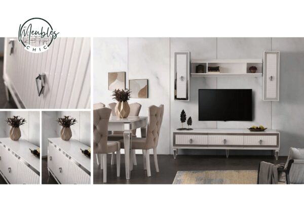 Ses lignes droites, son style minimaliste et ses rangements optimisés en font un ensemble parfait pour les salons modernes recherchant sobriété et raffinement.