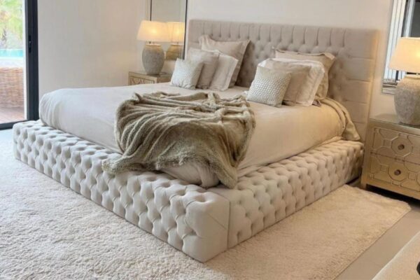 Découvrez notre cadre de Lit Royal, orné d’un tissu de qualité supérieure.