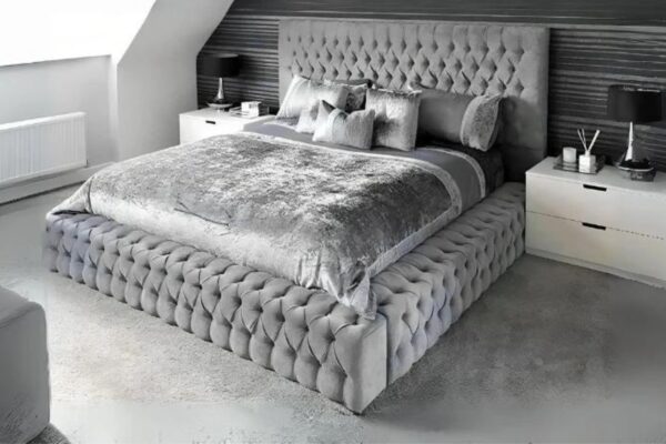 Découvrez notre cadre de Lit Royal, orné d’un tissu de qualité supérieure.