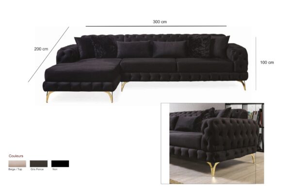 Pieds modernes : en métal ou en bois selon modèle, apportant une touche chic.