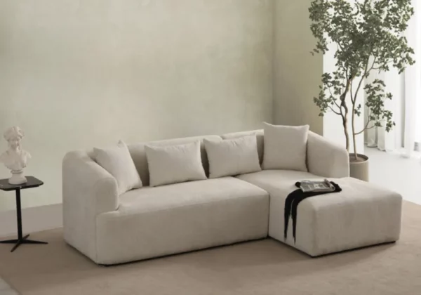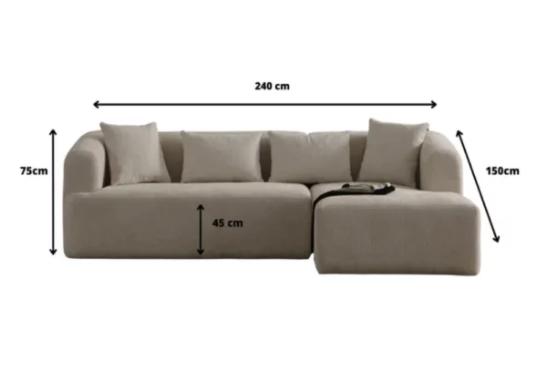 Offrez à votre salon une touche de modernité et de douceur avec ce canapé au design courbé et organique. Son revêtement en tissu doux et neutre apporte une ambiance chaleureuse, tandis que sa section chaise longue invite à la détente. Accompagné de coussins moelleux, il offre un confort optimal pour des moments de relaxation inégalés.