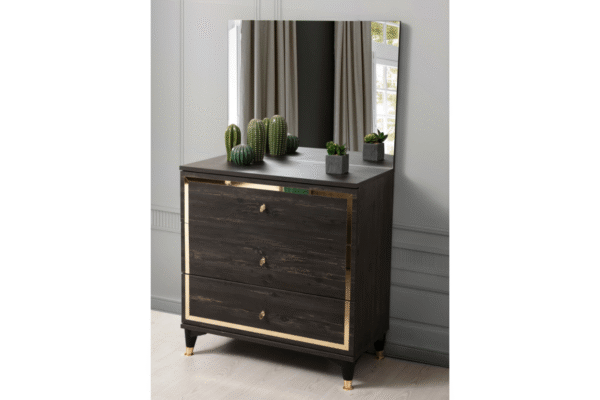 Commode avec miroir : 145 cm (hauteur) x 80 (largeur) x 41 (profondeur)