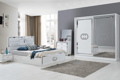 Illuminez votre chambre avec notre modèle complet GUSTO composée d’un cadre de lit, d’une armoire, de deux chevets et d’une commode (avec miroir). Une chambre chaleureuse qui vous apportera confort et bien-être.