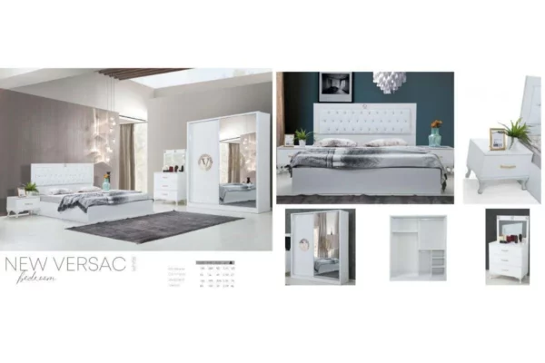 La chambre à coucher New Versec est un espace élégant et fonctionnel conçu pour instaurer une atmosphère apaisante et luxueuse dans votre maison. Cette collection sophistiquée comprend une armoire spacieuse, un lit confortable, une coiffeuse élégante et un chevet pratique, offrant tout le nécessaire pour aménager votre espace de sommeil avec style et commodité.