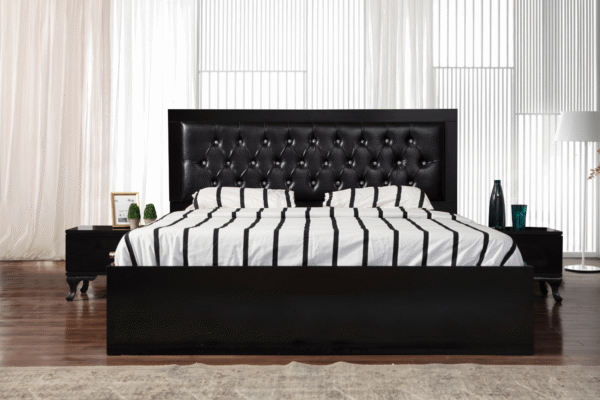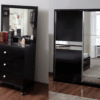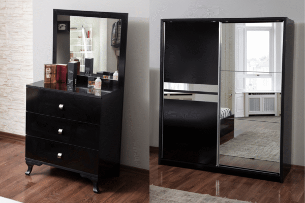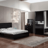 Illuminez votre chambre avec notre modèle complet NOVA composée d’un cadre de lit, d’une armoire, de deux chevets et d’une commode (+ miroir).