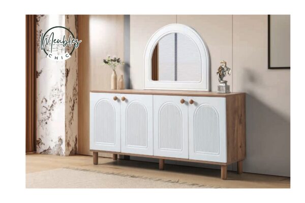 Peut servir de console, buffet compact ou meuble d’entrée.