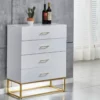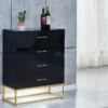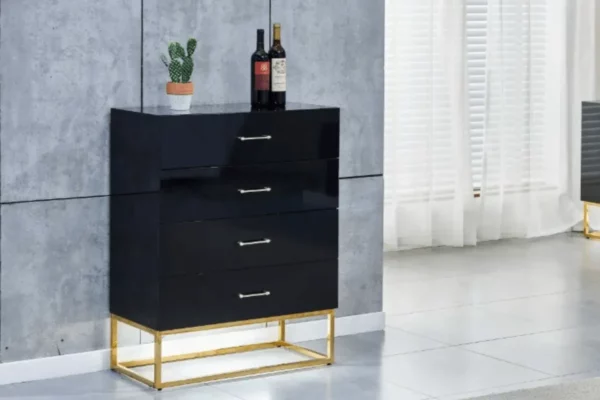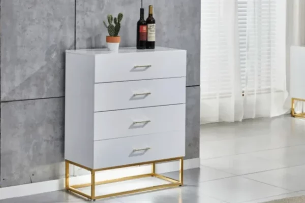 Rafraéchissez votre espace avec la Commode Alya Laquée. Personnalisez votre choix entre le blanc éclatant ou le noir profond. Les trois options de pieds – argent, doré et noir – ajoutent une dimension de style é cette commode fonctionnelle. Avec des tiroirs spacieux et un design épuré, la Commode Alya combine l’élégance moderne et la praticité pour une solution de rangement chic.