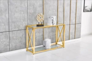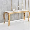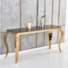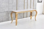 Découvrez la Console Baroque Pieds Gold, une piéce maétresse au design raffiné. Les détails baroques, le plateau spacieux et les pieds dorés créent une alliance parfaite de fonctionnalité et de style.