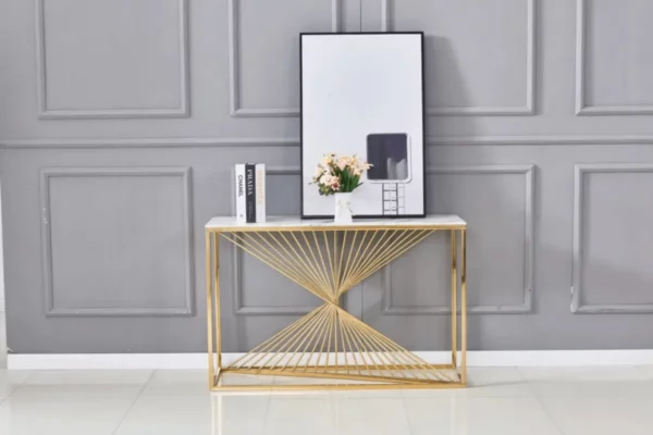 Découvrez la Console Brittany Pieds Gold, une piéce maétresse au design captivant. Les lignes épurées, le plateau spacieux et les pieds dorés créent une alliance parfaite de fonctionnalité et de style.