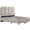 Le lit coffre ELEN séduit par son revêtement en tissu chenille haut de gamme, reconnu pour sa douceur et son aspect chaleureux. Sa teinte blanc cassé lumineuse apporte une touche de sérénité et s’intègre بسهولة dans tous les styles d’intérieur, du contemporain au minimaliste.
