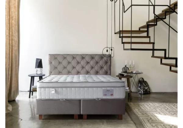 Lit coffre KARYA :Lit moderne avec téte de lit de P=10 cm et H=120 cm. Dispose d’un coffre de rangement intégré pour optimiser l’espace dans votre chambre. Design élégant et fonctionnel, offrant confort et organisation pour vos nuits de sommeil.
