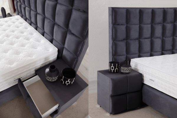 Doté d’un coffre de rangement spacieux, facilement accessible grâce à un système de vérins hydrauliques, le lit NEW DALLAS vous permet d’optimiser votre espace en toute discrétion. Il est parfait pour ranger couettes, oreillers ou linge de lit tout en gardant une chambre bien organisée.