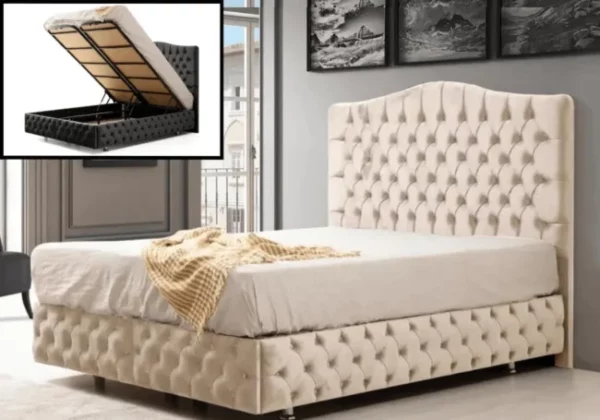 UGS : Lit Coffre Paris Velours avec Téte de lit Embourrée 180x200CM Catégorie :