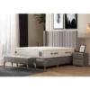Nos lits coffres sont munis de vérins hydrauliques assurant une ouverture et une fermeture fluides du coffre. Ces vérins offrent un soutien optimal au matelas tout en facilitant l’accès au rangement sous le lit.