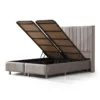 Ce lit coffre offre une fonctionnalité de rangement en étant relevable, offrant un espace de stockage pratique en dessous.
