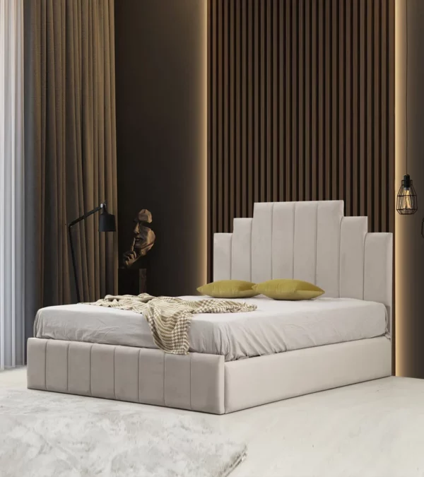 - Lit Pyramide : Structure pyramidale unique, revêtement en velours de haute qualité, finitions soignées.