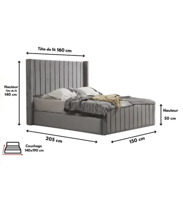 Optez pour l’élégance intemporelle avec le pack Tokyo. Fabriqué avec des matériaux nobles et des finitions soignées, ce lit allie esthétique et durabilité. Son velours doux au toucher et ses motifs délicats créent une ambiance cosy et raffinée. Personnalisez votre espace avec une large gamme de matelas et d’oreillers pour un confort sur-mesure. Profitez également de notre service de livraison et de montage gratuits en Île-de-France et de notre paiement facilité.