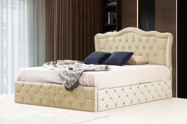 - Lit Venise : Un chef-d’œuvre de l’élégance avec sa tête de lit capitonnée et son revêtement en velours haut de gamme. Les motifs élégants sur le pied et la tête de lit apportent une touche de sophistication à votre chambre. Disponible en plusieurs dimensions pour s’adapter parfaitement à votre espace.