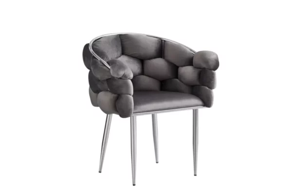 Le lot de 4 chaises “Ballon” en velours chrome offre les caractéristiques suivantes :– Quantité : Lot de 2 chaises– Matériau : Velours– Couleur : Chrome