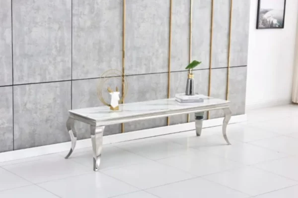 Découvrez le Meuble TV Baroque Chrome, mesurant 160x45x45 cm, une pièce sophistiquée qui combine élégance baroque et éléments contemporains. Ce meuble offre deux options de finition : marbre ou non-marbre, et deux choix de couleurs : blanc ou noir. Parfait pour redéfinir votre espace de divertissement, il ajoute une touche de luxe et de style raffiné à votre intérieur.