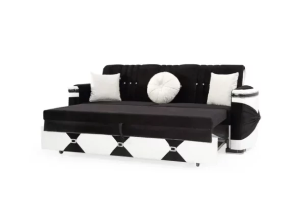 Alliant design sophistiqué et praticité, le salon Palace Noir est conçu pour maximiser votre confort. Il se transforme en lit en un clin d’œil et intègre un coffre de rangement discret pour une organisation optimale.