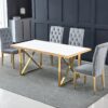 Élégante et sophistiquée, la Table à Manger CLARA associe une surface en verre trempé blanc à des accents dorés raffinés. Son design intemporel s’intègre harmonieusement à tous les styles de décoration, du moderne au classique, en apportant une touche de luxe et de charme à votre espace repas.