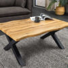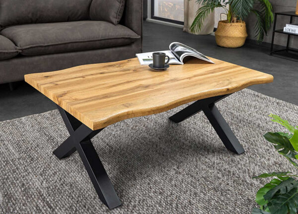 Apportez une touche authentique et moderne à votre salon avec cette table basse de 90 cm. Son plateau en MDF effet tranche d’arbre recrée l’élégance du bois naturel, tandis que ses pieds en métal noir en forme de X ajoutent une touche industrielle et contemporaine.