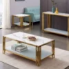 La Table Basse Dorée en Marbre Blanc incarne une élégance exceptionnelle. Son design raffiné et ses finitions luxueuses apportent une touche de sophistication et de modernité à votre salon.
