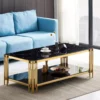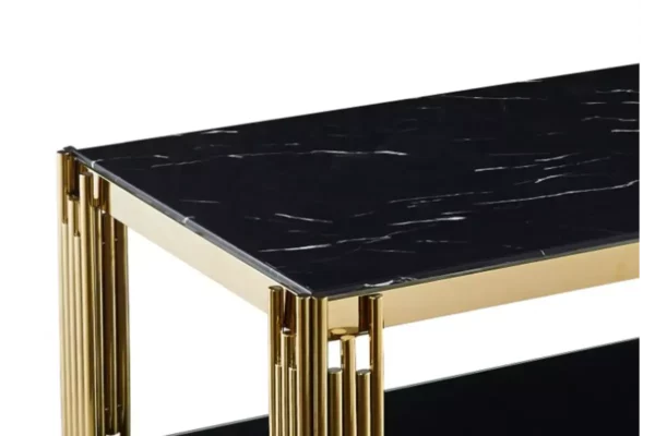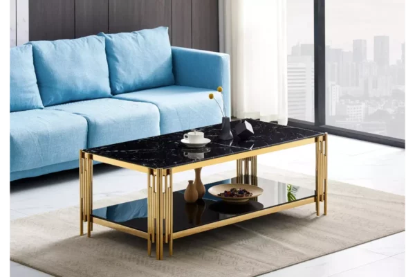 La Table Basse Dorée en Marbre Noir incarne l’élégance et le raffinement. Son design luxueux apporte une touche de sophistication unique à votre salon, transformant votre espace de vie en un véritable écrin de modernité et de prestige.