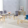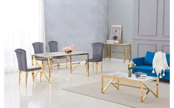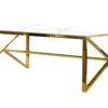 La Table Basse Dorée en Verre Trempé Effet Marbre Blanc JESSY apporte à votre intérieur une touche luxueuse et élégante. Son design sophistiqué, avec son plateau en verre trempé effet marbre blanc et ses accents dorés, transforme votre salon en un espace chic et moderne.