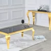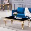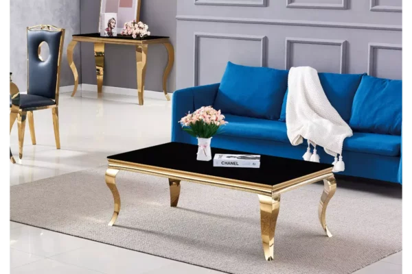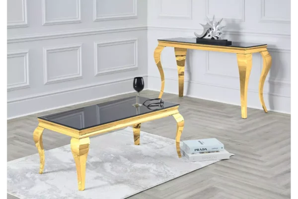 La table basse en métal doré et verre trempé noir apporte une touche de sophistication et d’élégance à votre salon, alliant design moderne et matériaux raffinés.