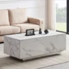 Innovez avec la table basse flottante é coffre, pieds chrome. Un design moderne, fonctionnel et élégant pour votre salon. Découvrez le style du flottant avec une touche de chromé.109 profondeur 110 largeur 40 hauteur