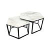 La Table Basse Gigogne Hexagone Pied marie l’élégance géométrique é la modernité. Choisissez entre un plateau en marbre beige, marbre blanc ou verre transparent avec des pieds noirs pour une personnalisation raffinée