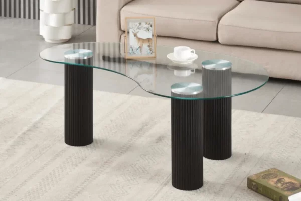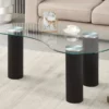 Table Basse Pylone Pied Noir Plateau Transparent 120x70x45 CM