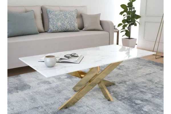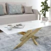 Table basse rectangulaire design verre marbré et pieds dorés MELISSA