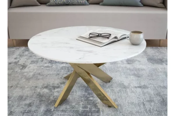 Table basse ronde design verre marbré et pieds dorés MELISSA