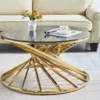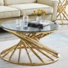 La table basse circulaire RUBY, fabriquée en verre trempé, respire é la fois sophistication et durabilité. Son design élégant ajoute non seulement de l’élégance mais assure également la robustesse, ce qui le rend adapté é un usage quotidien.