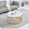 La table basse ronde FANY en marbre blanc et doré allie élégance et modernité. Avec un diamètre de 90 cm et une hauteur de 45 cm, elle apporte une touche sophistiquée à votre intérieur.