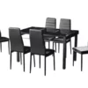 Optez pour un ensemble table à manger conçu pour 4 à 6 personnes, accompagné de chaises noires élégantes. Idéal pour la salle à manger, la cuisine ou même la terrasse, cet ensemble allie style et praticité à un prix abordable.